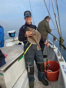 Vi fiskede på sædvanlige pladserne ned ved Grissepladsen og Grissetrynen. Fladfiskene var noget forsigtige i starten men det skyldes strømmen for det var der ikke meget af. Da den tog lidt til i løbet af dagen kom det mere gang i fladfiskene. Fangsterne lå mellem 16 og 42 med hjem efter hvor villig man var til at tage alle dem over målet med hjem.
